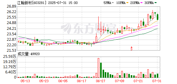7月31日,江瀚新材(603281)发布公告,截至2025年7月30日,公司已回购458万股,占总股本的1.23%,回购总金额为1.11亿元,回购价格区间为23.22元/股至26元/股。