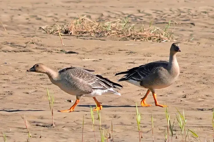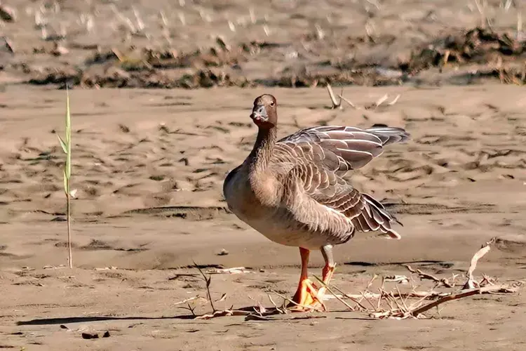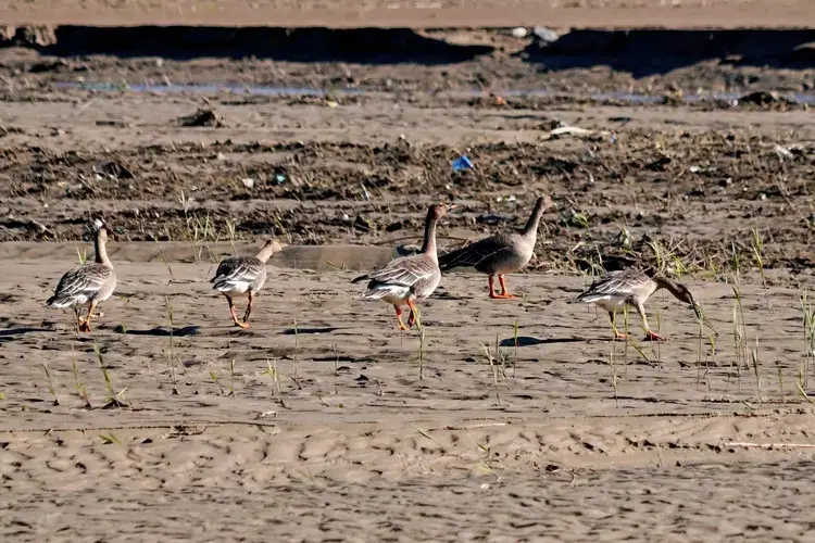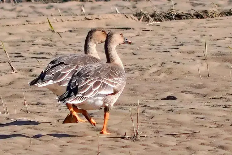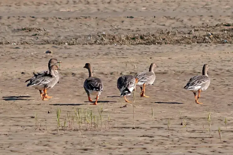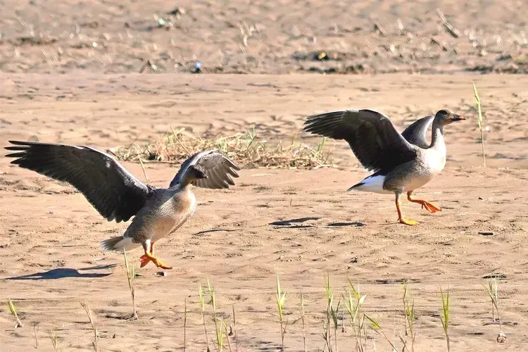 快门不断按下,定格下这一个个温馨又有趣的瞬间。周围的豆雁们,有的在低头觅食,用它们的喙仔细翻找着沙地里的食物;有的则展开翅膀,在沙地上轻快地踱步,像是在舒展飞行后的筋骨。